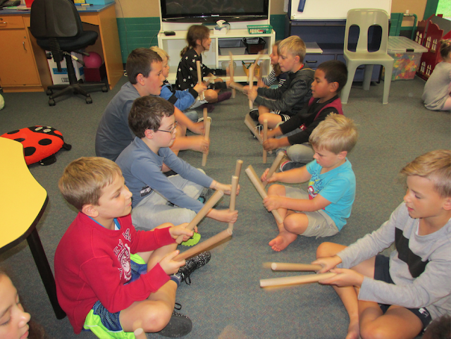 | We love meeting our whanau buddies every Friday. Here we are practising with the rakau sticks. |